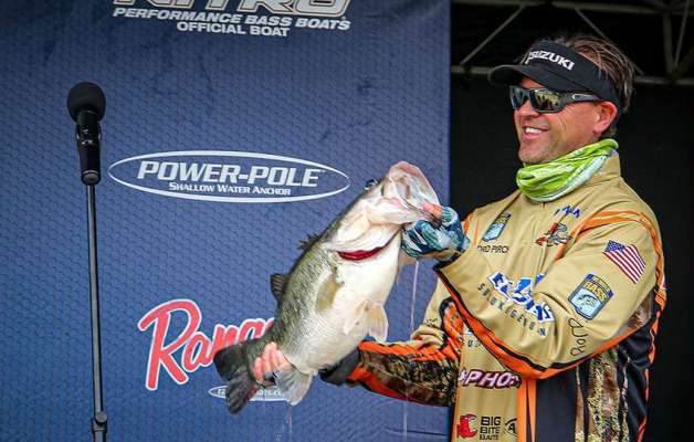Seth Feider just caught and released, a bass with the tail of a shad protruding from its mouth, confirming what we already knew. Patrick Walters is ahead of where he...