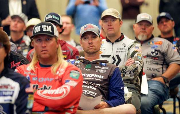 GREENVILLE, S.C. — At the Bassmaster Classic registration meeting at the Hyatt Regency in downtown Greenville, 54 jerseyed anglers grouped up tightly in ballroom chairs, like a school of blueback...