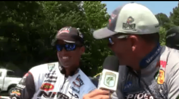 Davy Hite talks to BASSfest champ Edwin Evers before he weighs in.