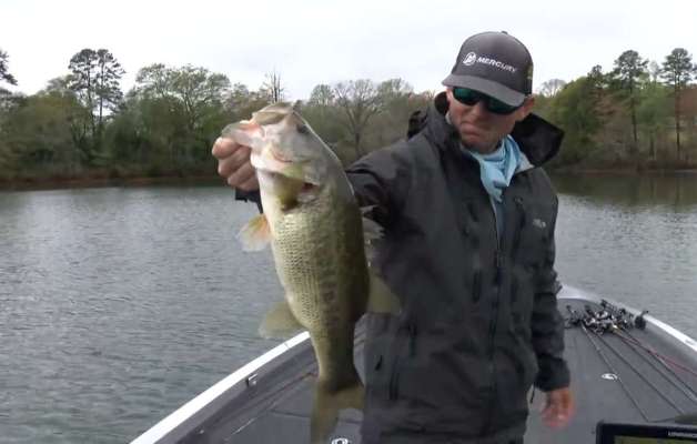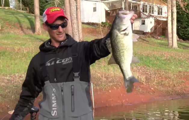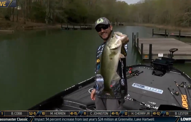 Stetson Blaylock entices a big largemouth to bite a topwater on Championship Sunday on Lake Hartwell.